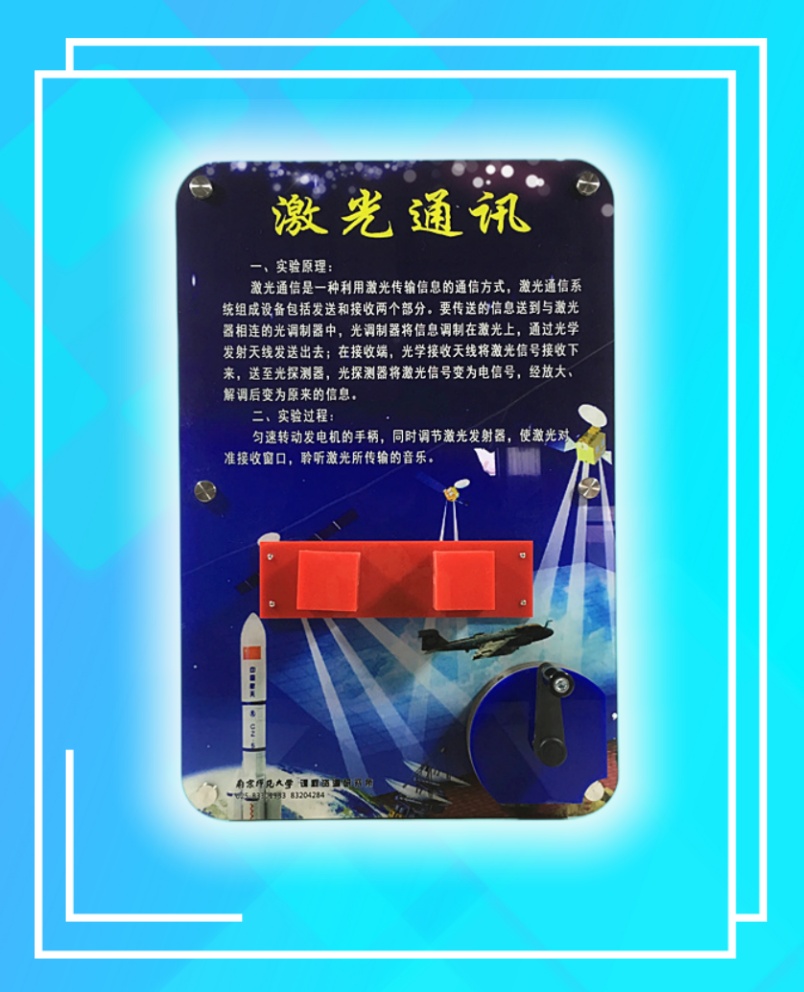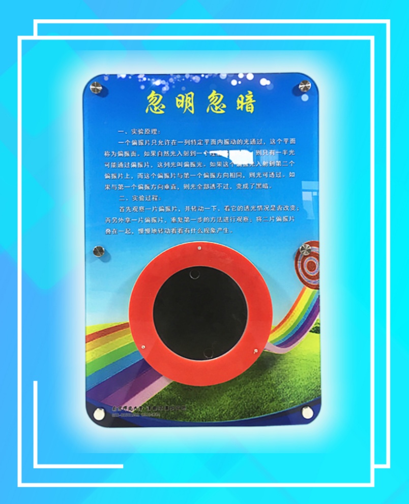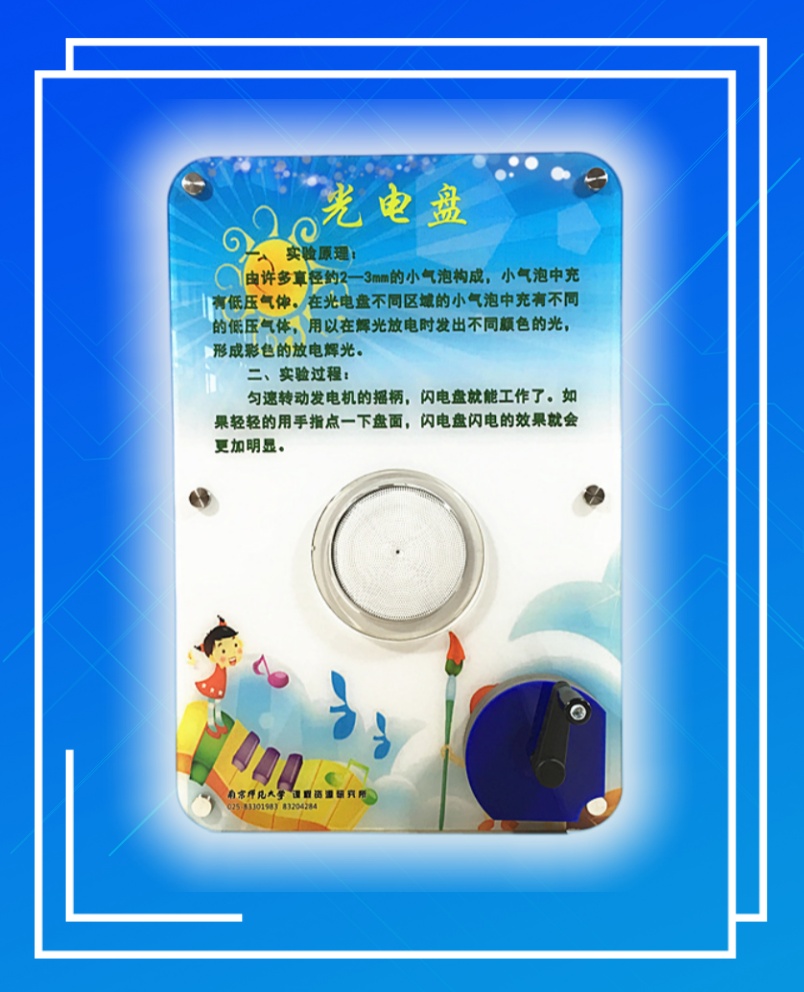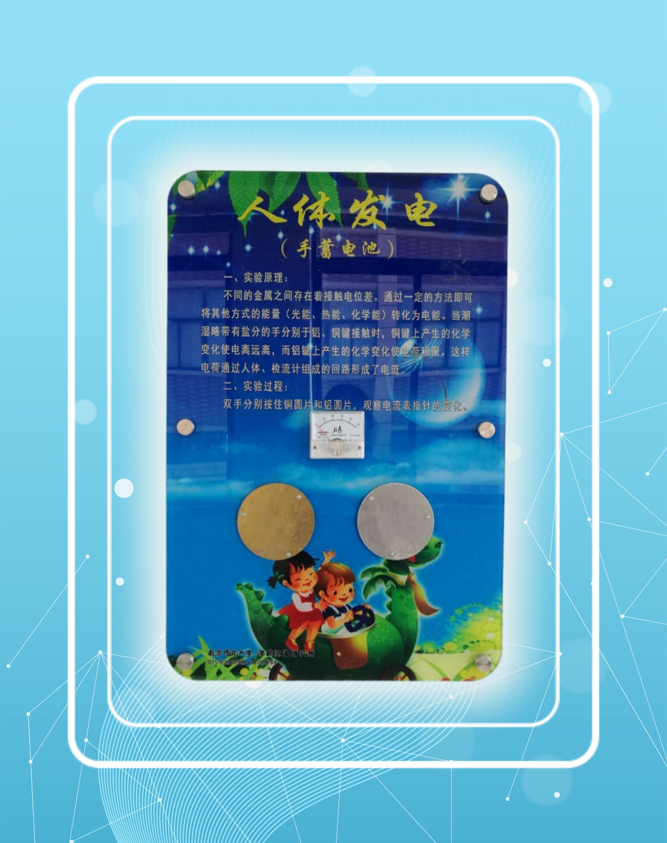 規(guī)格:400X600,主要展示器件安裝于亞克力前板上;前板為5mm厚亞克力板,畫面采用UV打印技術(shù),背板采用12mm抗貝特板;前后板可用6顆36mm的工藝螺釘固定于墻體上。采用模塊化手搖發(fā)電機(jī)構(gòu)和穩(wěn)壓穩(wěn)流技術(shù)供電。