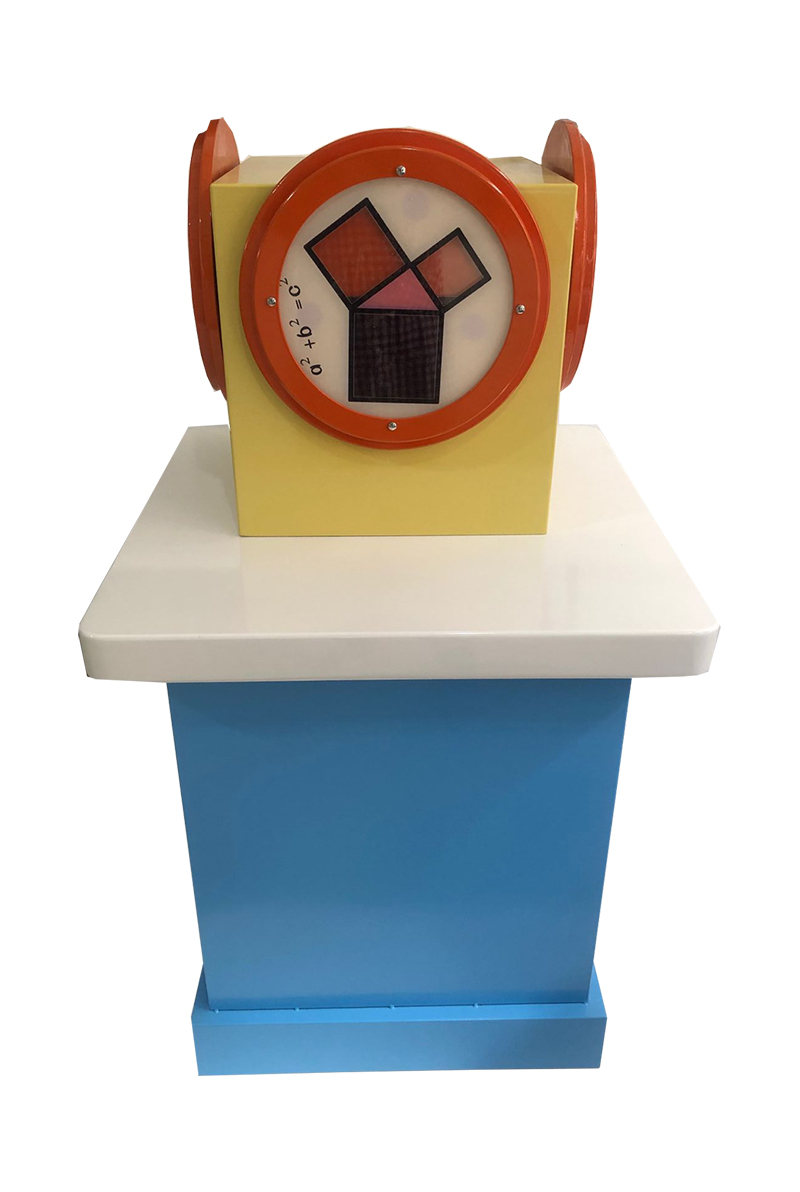 功能概述:展品由大、小圓盤、小熊模型、操作手輪組成。轉動手輪,會看到小圓盤內切于大圓盤滾動,而小圓盤上的小熊居然沿直線往復運動。