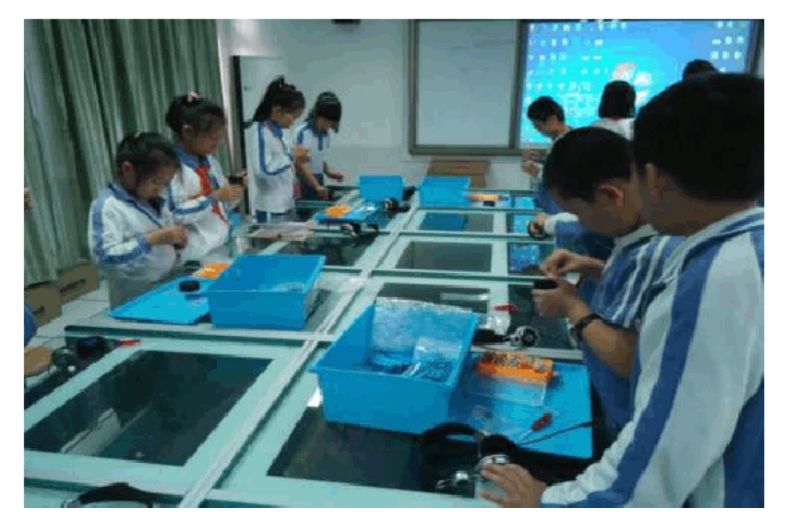 (4)研創環境:創客教育課程具有研創性,鼓勵學生像科學家一樣開展研究和創造活動。創客教育課程的開展需要研創環境的支撐,如,各種創客空間、探究實驗室、互動型教室等。研創環境的設計需要遵循人機工程學基本原則,給學習者提供舒適、自由、開放的創作空間;要能夠方便的接入互聯網,支持學習者通過網絡檢索資料、連接社群、在線研討、展示分享等;要根據需要提供必備的硬件、軟件、材料等資源,支持學習者通過動手操作將創意變成現實。