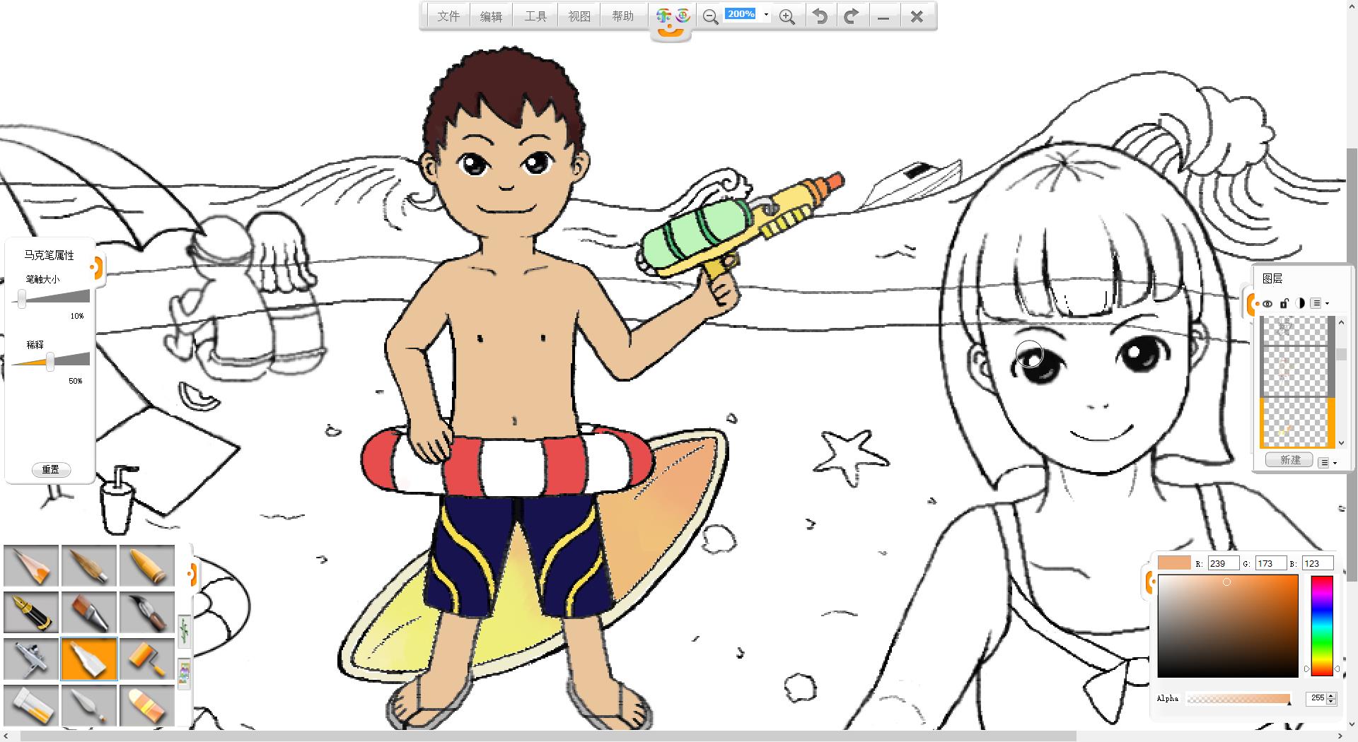 26.一幅“玩轉暑假”的作品創作完成了,如果有時間還可以給人物更換不同的發型和服裝。