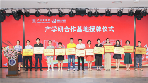 廣州商學院向廣視通授予“產學研合作基地”牌匾,標志著校企人才培養合作正式落地。