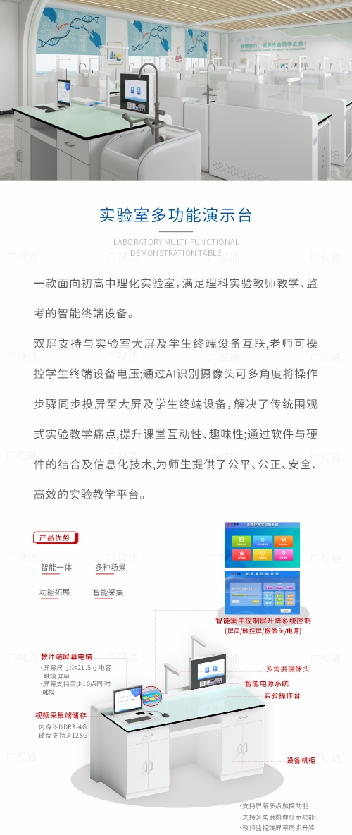 教育裝備數字化一站式解決方案,智能理化生實驗室、中考實驗操作考評系統、實驗仿真與教學系統、數字書法教學云系統、中學AI教考實驗室(升降式/便攜式智能終端)、頂裝/吊裝實驗室、探究實驗室、科學實驗室、人工智能科創實驗室、智慧書法教室、數字音樂教室、美術教室、數字地理教室、數字歷史教室、心理咨詢室、閱覽室、舞蹈室、陶藝室、烹飪教室、通用技術實驗室、勞動教育功能教室、科普探究等