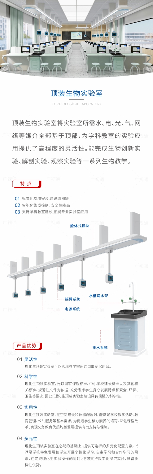 教育裝備數(shù)字化一站式解決方案,智能理化生實驗室、中考實驗操作考評系統(tǒng)、實驗仿真與教學系統(tǒng)、數(shù)字書法教學云系統(tǒng)、中學AI教考實驗室(升降式/便攜式智能終端)、頂裝/吊裝實驗室、探究實驗室、科學實驗室、人工智能科創(chuàng)實驗室、智慧書法教室、數(shù)字音樂教室、美術教室、數(shù)字地理教室、數(shù)字歷史教室、心理咨詢室、閱覽室、舞蹈室、陶藝室、烹飪教室、通用技術實驗室、勞動教育功能教室、科普探究等