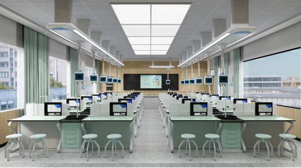 教育裝備數字化一站式解決方案,智能理化生實驗室、中考實驗操作考評系統、實驗仿真與教學系統、數字書法教學云系統、中學AI教考實驗室(升降式/便攜式智能終端)、頂裝/吊裝實驗室、探究實驗室、科學實驗室、人工智能科創實驗室、智慧書法教室、數字音樂教室、美術教室、數字地理教室、數字歷史教室、心理咨詢室、閱覽室、舞蹈室、陶藝室、烹飪教室、通用技術實驗室、勞動教育功能教室、科普探究等