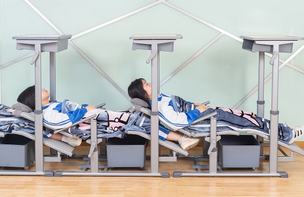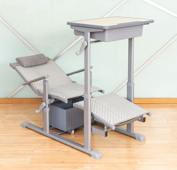 3、課斗規(guī)格:360mm*450mm*100mm±3mm,PP塑料一次成型,課桌底下前部設置藤質(zhì)躺板。
