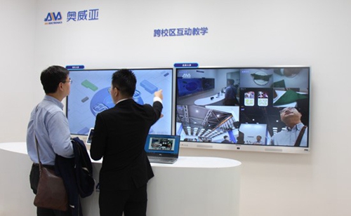 據了解,奧威亞于2019年的戰略調整為視頻互動和智慧教學方案服務商,本次高博會,奧威亞帶來了跨校區互動教研解決方案、智慧教學空間和智慧實訓、智慧課堂+AI大數據解決方案等。
