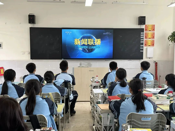 ▲學(xué)生在教室觀看每日新聞聯(lián)播