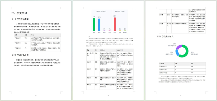 課后,課堂智能反饋系統(tǒng)化身“AI教研員”,識(shí)別師生互動(dòng)等關(guān)鍵片段,生成實(shí)時(shí)的反饋報(bào)告,并提出AI教學(xué)建議。精準(zhǔn)、豐富、多維的課堂數(shù)據(jù)分析,幫助教師及時(shí)反思教學(xué)表現(xiàn),不斷優(yōu)化改進(jìn)。