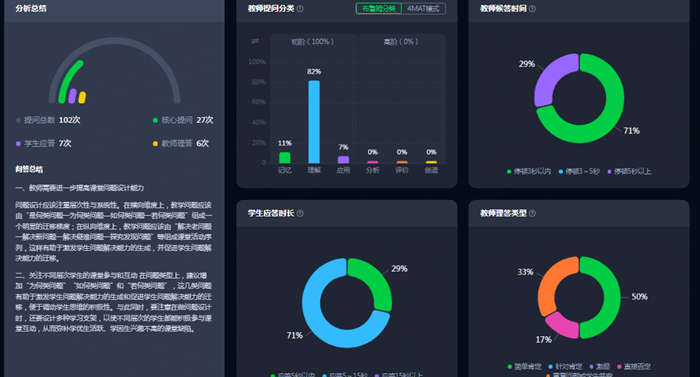 針對師生發(fā)展需求與教研實(shí)踐中的實(shí)際困境,龍游縣塔石小學(xué)引入希沃AI課堂智能反饋系統(tǒng),該系統(tǒng)可對課堂進(jìn)行三維數(shù)據(jù)分析,依托專業(yè)教學(xué)模型實(shí)施量化評估,借助AI技術(shù)生成針對性反饋建議,并最終形成AI分析報(bào)告,為課堂教學(xué)改進(jìn)提供數(shù)據(jù)支撐與優(yōu)化路徑。