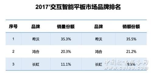 市場研究報告》(下稱“報告”),報告顯示:2017年交互智能平板市場中,希沃(seewo)以35.3%、35.5%的市占比奪得年度銷量、銷額雙桂冠,創下連續6年蟬聯交互智能平板行業市占率第一的佳績。