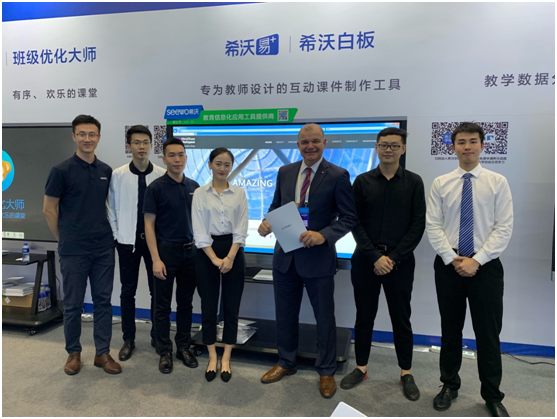 Martellacci在希沃展區(qū)現(xiàn)場觀看完工作人員的展示后稱贊到,并主動與產(chǎn)品和工作人員合影。