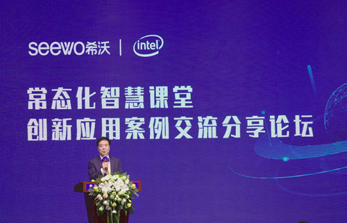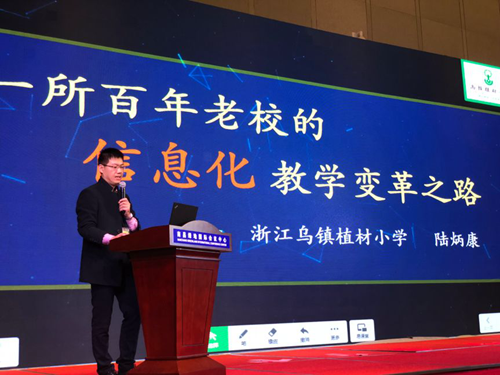 6.希沃協辦首屆中小學教育裝備應用創新校長論壇暨優秀案例頒獎活動,希沃黃明寒在大會啟動儀式上致辭。同時,烏鎮植材小學副校長陸炳康以希沃信鴿、希沃白板、班級優化大師等工具的實際應用為基礎,進行了《一所百年老校的信息化變革之路》的主題分享 。