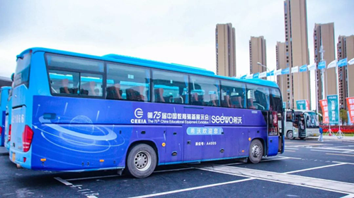 8.希沃以獨家冠名商的主人翁精神,為遠道而來的參展伙伴提供貼心的免費接機巴士,并精心為每位觀展者準備參會指南。