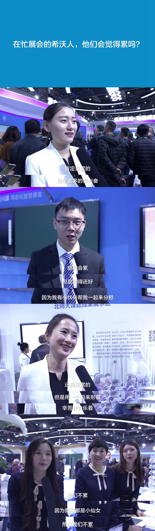 11月19日,為期三天的第75屆中國教育裝備展示會圓滿落幕。三天以來,希沃展位人山人海、十分火爆。看完希沃展位,大家對希沃有哪些看法呢?希沃的采訪小團隊在現場做了一次隨機訪談,請隨我一同來看。