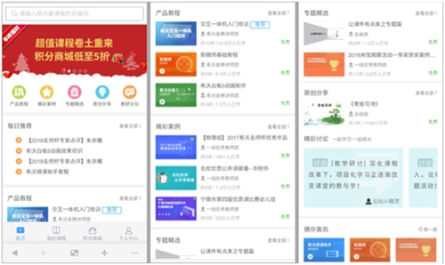 隨著加入希沃學(xué)院的老師越來(lái)越多,老師們對(duì)成長(zhǎng)的要求越來(lái)越高,希沃學(xué)院也在一步步成長(zhǎng)著。從一開(kāi)始的希沃軟硬件培訓(xùn)課程、信息技術(shù)方面的課程,到圍繞教師成長(zhǎng)的信息化深度融合教學(xué)法、教學(xué)案例、教學(xué)理念、專(zhuān)家精品課、特訓(xùn)營(yíng)等方面的課程,再到全國(guó)性一線(xiàn)教師的交流平臺(tái),希沃名師杯、希沃杏壇計(jì)劃、教育先行者巡回研討會(huì)等教師展示和成長(zhǎng)的項(xiàng)目,希沃學(xué)院為老師們提供了豐富的線(xiàn)上線(xiàn)下學(xué)習(xí)和成長(zhǎng)的機(jī)會(huì)。