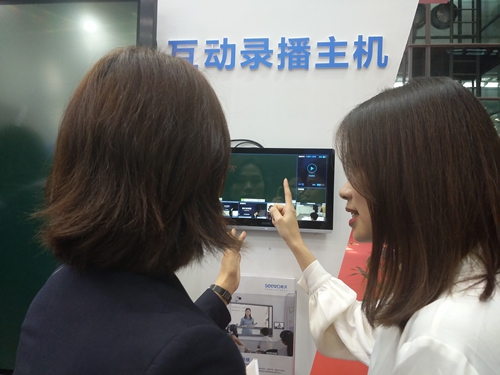 “另外在本次展會上,希沃帶來了交互智能平板、希沃云班牌、班級優(yōu)化大師等產(chǎn)品,其中希沃云班牌、希沃易課堂、希沃互動錄播是希沃參展主打產(chǎn)品,還有希沃智慧黑板、記憶黑板。讓教室環(huán)境與科技同步,讓教師與科技同步,將智慧和科技結(jié)合。現(xiàn)時(shí)教育行業(yè)產(chǎn)品變化迅速,一線教學(xué)對應(yīng)用工具的需求從單一變得多元化,但希沃作為專業(yè)的教育信息化應(yīng)用工具提供商,在堅(jiān)持為教育信息化的發(fā)展提供實(shí)用易用的應(yīng)用工具的前提下,致力成為千萬教師信賴的教育科技品牌。”