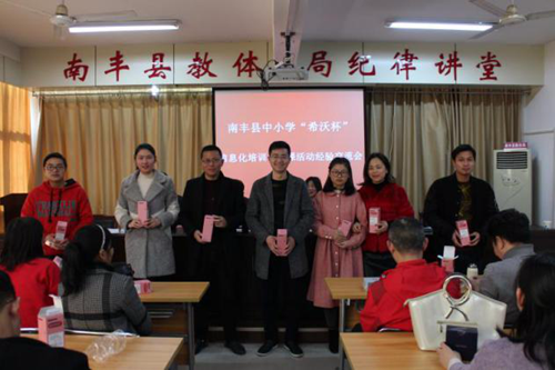 交流會(huì)上,南豐縣教體局為此次大賽榮獲一等獎(jiǎng)、二等獎(jiǎng)的優(yōu)秀教師進(jìn)行頒獎(jiǎng),小學(xué)萬志紅、黃曦老師及中學(xué)江文華、洪劍玲老師在會(huì)上作經(jīng)驗(yàn)交流分享,對(duì)此次培訓(xùn)的希沃白板5、班級(jí)優(yōu)化大師、移動(dòng)授課助手等教學(xué)工具對(duì)教學(xué)帶來的幫助表示感謝,期望能有更多的機(jī)會(huì)參與信息化教學(xué)能力提升的活動(dòng),期望能與更多的老師一起成長(zhǎng)。