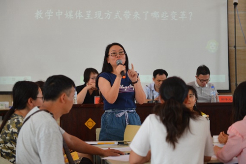 最后,在兩個學科專題的研討會上,來自云南師范大學的朱教授也參與到研討中來,每個小組都積極闡述自己的觀點并提出問題,與名師專家進行了充分交流。當下應該由扎營者向攀登者進發,而在課堂當中, “生成“部分,才是教育教學與信息化融合的關鍵所在。