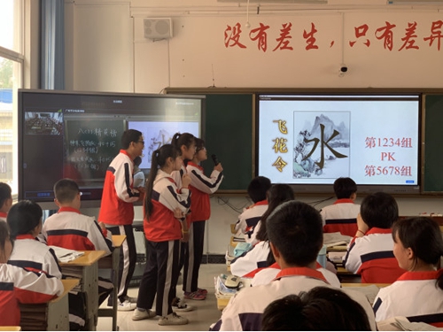 “不畏浮云遮望眼,只緣身在最高層。”結合交互智能錄播系統,遠在廣州的平沙培英學校語文老師為現場塘邊中學的同學們帶來了一節妙趣橫生的語文課《古詩苑漫步》。在老師的組織和指導下,學生們整齊地朗誦一首首古詩,并分組開啟了飛花令游戲。基于希沃交互智能錄播實時流暢的直播與大屏的畫面顯示,兩地師生呈現了一堂精彩生動的“遠程教育互動課堂”。