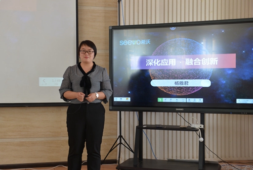 大理市互動教學創新工作室主持人、希沃杏壇導師楊雅君針對信息技術與教育教學的融合進行了《深化應用•融合創新》的專題講座。