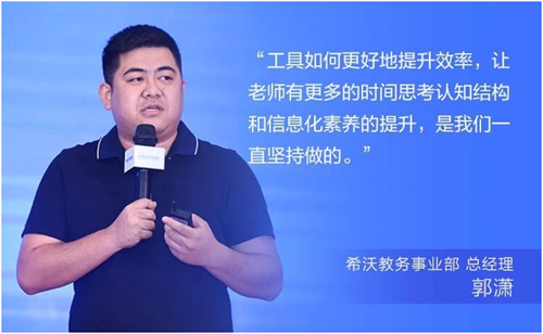 中國電化教育雜志社社長許林先生的致辭,拉開了希沃分論壇的序幕。隨后,來自北師大的朱京曦博士、希沃教務(wù)事業(yè)部總經(jīng)理郭瀟、希沃教育研究院院長胡婷玉,從政策要求、未來教師核心能力、教育技術(shù)助力教學創(chuàng)新、平臺服務(wù)支撐教師成長等全方位探討了教師的未來成長之路。