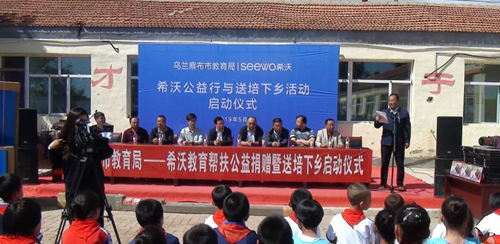 捐贈儀式上,希沃向鐵沙蓋鎮中心校和烏素圖中心校現場捐贈65英寸交互智能平板2臺,教師展示平臺2套,推拉黑板2套,教學軟件2套,彩筆90套。