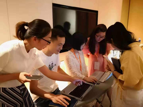 為了展現出最好的學科融合作品,老師們紛紛放棄了休息的時間。白天的培訓緊湊充實,晚上老師們學習與討論的熱情依舊高漲。房間、大廳、餐廳,伴著并不明亮的燈光,老師們仍在討論與打磨課件,精心準備。