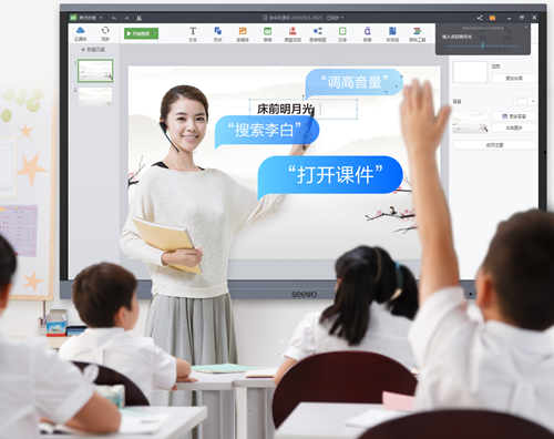 最受老師喜愛的功能,當屬語音喚醒應用軟件。“打開希沃白板”、“打開視頻”、“關閉暴風影音”……一句話的事兒,對應的軟件應用就能快速被喚醒、進入應用界面,或者關閉程序。無論在教室的哪個位置,老師都能通過語音交互調取自己需要的應用,無需在講臺和學生座位之間來回跑動。