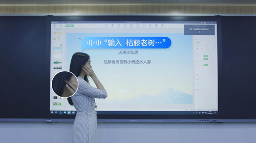 人的一言一行得到機器的反饋越快速,人機交互的效率便越高。當內容記錄不再只有粉筆、觸摸手寫,當語音轉寫進入課堂,老師在課堂上的移動自由便又再添一分。基于課堂教學對內容生成的需要,小沃同學支持語音轉文字的功能,老師只需輕喚“輸入”,便能調取輸入框,并自動識別語音內容轉換成文字呈現在師生面前。