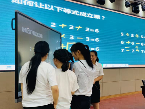 緊接著希沃杏壇講師樊巧慧從一線教師的角度,結(jié)合自己的信息化應(yīng)用能力提升的經(jīng)驗,為在場老師講解了希沃軟件在中小學(xué)各學(xué)科課堂中的使用。參訓(xùn)老師們領(lǐng)略了希沃白板在備課、授課等情景下的應(yīng)用:從形狀、文字講到視、音頻導(dǎo)入;從視頻打點功能講到背景制作、講到蒙層功能。每到互動環(huán)節(jié),老師爭相上臺操作互動,都想體驗下希沃白板預(yù)設(shè)的各項課堂工具,現(xiàn)場氛圍輕松而熱烈,參訓(xùn)老師就像學(xué)生一樣融入了信息化的高校生動的課堂里。