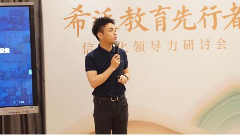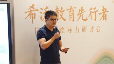 開場,希沃教育研究院教師發展部負責人梁杰,透過政策,將工作室的意義、目標與方向做了解讀與闡述,把“示范、引領、指導、輻射”的核心職能傳遞給各位先行者,再加上一些成功案例與模式構架的剖析,幫助大家理清建設思路,為信息化成長助力。