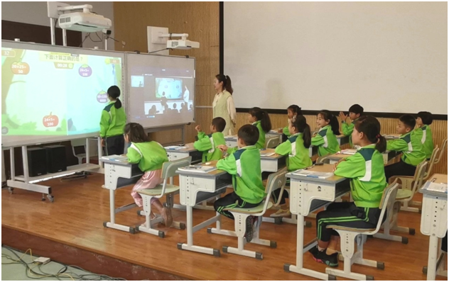 據悉,從今年5月起,希沃開始助力保聯小學和楂林小學建設“同步互動課堂”,先后協助兩校部署互動錄播教室,并對學校老師進行專題培訓,幫助老師獨立完成與遠端校的實時互動。