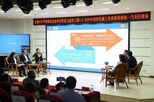 為落實《教育部關于實施全國中小學教師信息技術應用能力提升工程2.0的意見》相關要求,全國中小學教師信息技術應用能力提升工程2.0組織實施工作高級研修班現場于2019年9月26日下午兩點在長春汽車經濟技術開發區第九中學舉行。本次活動是由教育部主辦,全國能力提升執行辦公室、吉林省教育廳、吉林省教育學院承辦,長春汽車經濟技術開發區教育局協辦,來自全國各省市的300余名教師參加了本次活動。長春市教育局副局長張茂金、崔國濤,長春市教育局師培處處長張希昌,汽開區管委會副主任丁文濤出席了會議。