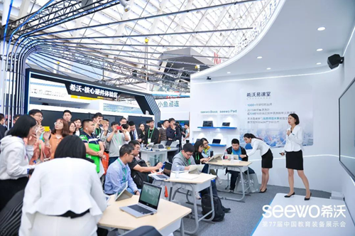 10月12日,在第77屆中國教育裝備展示會上,希沃易課堂全新方案重磅亮相,憑借小組合作學習、3D仿真實驗、AI助教等新功能,在展會上吸睛無數。