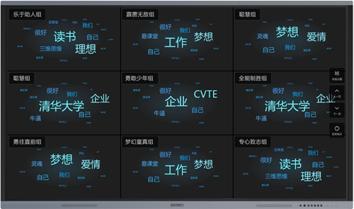 希沃品課的小組投屏功讓小組研討結果同屏展示,結論呈現更直觀。既方便了老師的對比講解,也讓學生一目了然。