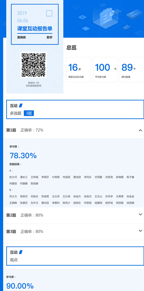 課后,老師可以一鍵掃碼,帶走課堂學情數據,作為學生平時成績納入期末考核。