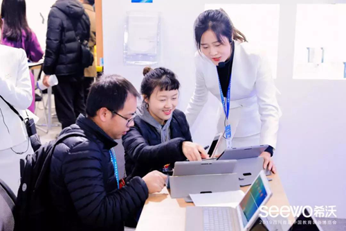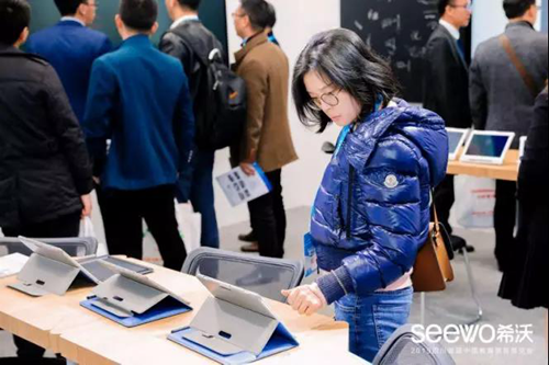 新品之外,希沃交互智能平板、希沃白板、班級優化大師等經典的交互顯示設備和應用軟件也同樣成為本屆展會焦點。作為國內交互智能平板的首創者,不少參會人士慕名而來現場體驗,而希沃也保持了一貫的開放,為有需要的參會企業提供交互顯示設備支持等服務。