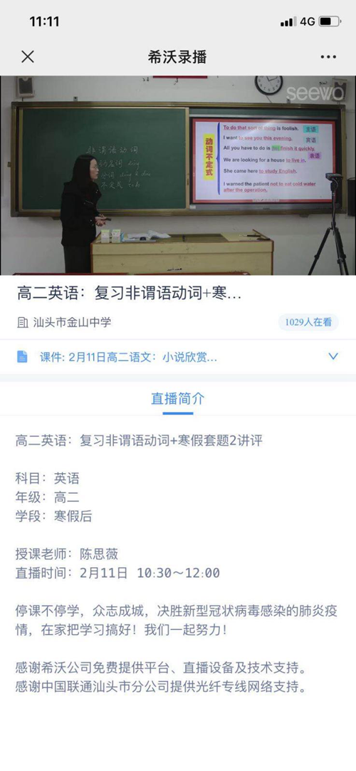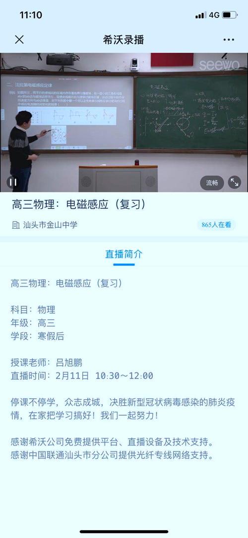 新型冠狀病毒肺炎疫情在全國肆虐,全面反擊的號角已經(jīng)吹響,全國人民眾志成城攜手抗疫。為響應(yīng)教育部“停課不停學(xué)”的精神,廣東汕頭金山中學(xué)借助希沃錄播開啟了網(wǎng)絡(luò)直播課堂。