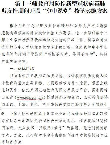 為全面做好疫情防控工作,教育部1月27日下發2020年春季學期延期開學的通知。基于此,新疆建設兵團第十三師教育局部署“防控新型冠狀病毒肺炎疫情期間開設‘空中課堂’教學實施方案”,希沃迅速展開行動,為新疆建設兵團十三師的教育主管部門及學校提供希沃云課堂方案,幫助教師提前掌握線上授課能力,為開展“空中課堂“做好準備。