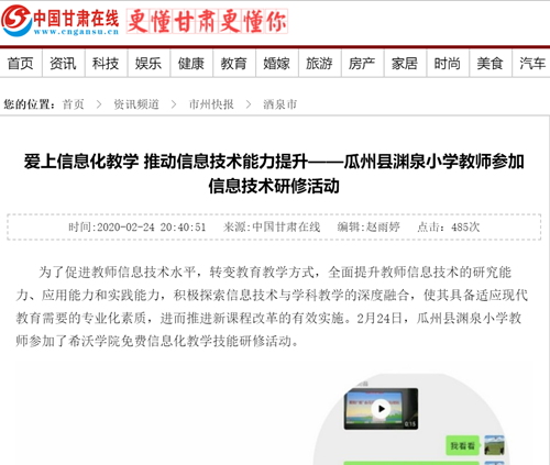 (中國甘肅在線報道瓜州淵泉小學(xué)的培訓(xùn))
