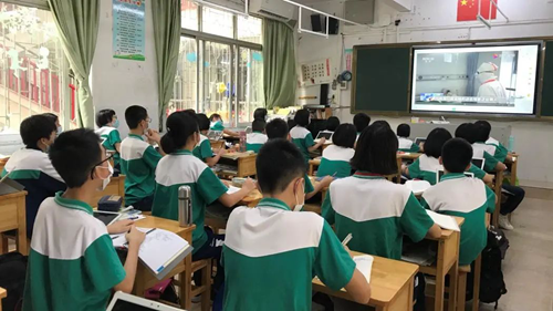 課堂上,正播放著一段視頻,學生們聚精會神地觀看,時而凝思,時而頻頻點頭,時而從角落傳來輕輕地啜泣聲。
