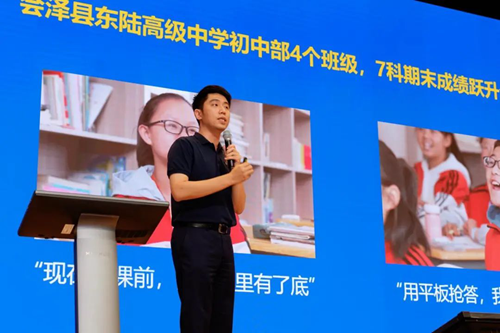 “易課堂的易是‘易用的易’,也是‘變化的易’。希沃易課堂服務課前、課中、課后的教學與學習,致力于為師生提供簡易、實用、穩定的信息化工具,以減負提效,推動教育變革。”希沃學務事業部總經理邱澈從產品初衷與產品邏輯講起,為與會嘉賓介紹了希沃易課堂支撐未來教學變革的理念與途徑。中間,他分享了會澤東陸高級中學的7科期末成績躍升全縣第一與明明同學愛上物理課的真實故事,明明同學覺得用平板搶答很刺激,物理課再也不枯燥了。