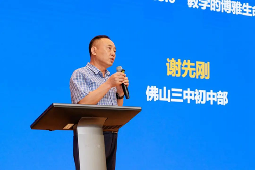 隨后,佛山市第三中學初中部校長謝先剛從形成背景、迭代過程與初步效果三個層面,為與會嘉賓帶來了他關于C-ice3.0(教育云-探究/對話/體驗)式教學與管理的分享。佛山市第三中學初中部基于教育云的智慧課堂教學實驗班已從2016年的4個班發展到了今年的36個班級,催生了學校網絡環境下的教學新生態與新方式,學生站到了教學的正中央。他認為,平板教學在一定程度上提升了重點高中上線人數、普高上線率,且對優等生的提升作用更加明顯。
