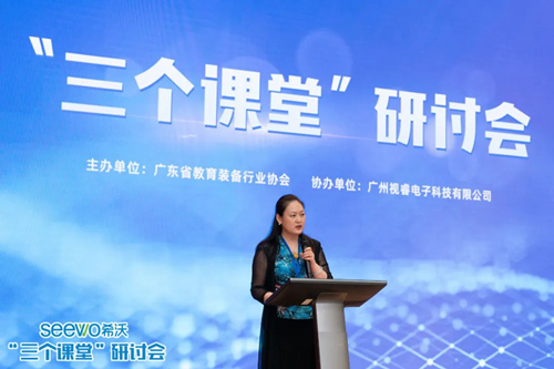 廣東省教育裝備行業協會秘書長王桂花在致辭中表示:“十三五以來,國家持續加大對教育信息化建設的投入力度。協會聯合希沃舉辦這次論壇活動,一方面是希望和來賓共同探討與貫徹教育部的《關于加強“三個課堂”應用的指導意見》,加強信息化技術與教育教學的深度融合,另一方面我們也邀請了優秀的教育一線工作者,為我們分享他們的寶貴經驗,展示理論與成果,以進一步促進‘三個課堂(專遞課堂、名師課堂和名校網絡課堂)’的穩步落地,推進教育公平�!�