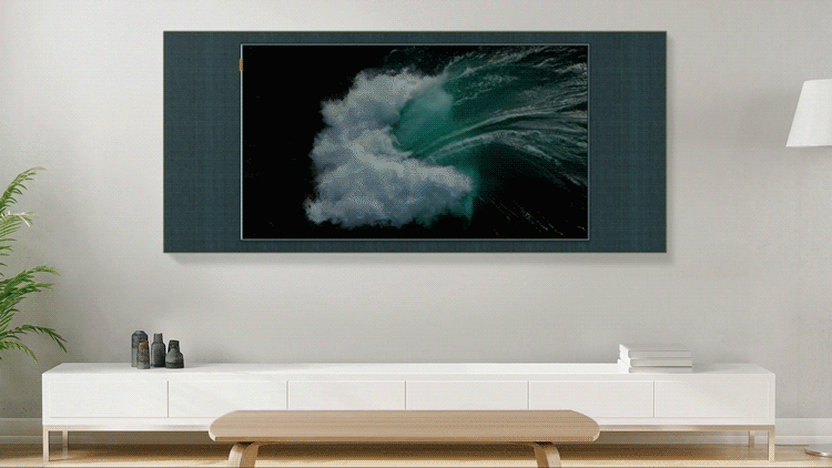 在工藝上,藝境系列采用超薄機身的全貼墻設計。藝境系列兩側作留白設計,自然而然引導觀者把目光聚焦屏幕,讓屏中世界盡顯精致。