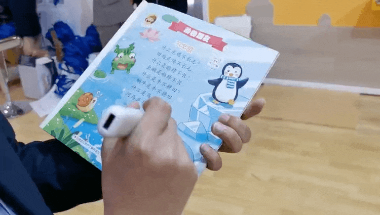 值得一提的是首次亮相的新品——小希智能筆,吸引了一眾參展者的目光。小希智能筆具備掃書點讀、語音識別、錄音轉寫以及智能遙控四大功能特色,掃描書籍即可進入對應模塊、播放視頻語音,錄音轉寫功能為老師制作幼兒成長記錄提供了更準確的文字素材,大大便利了老師的教學工作。