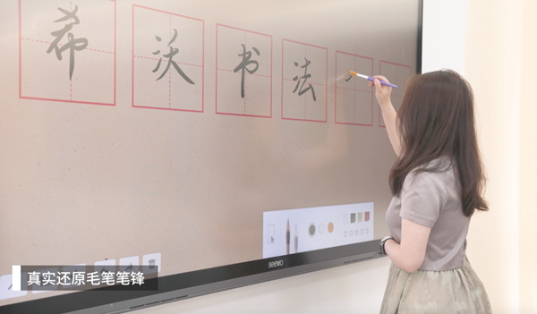 希沃交互智能平板高精度紅外系列通過超高精度觸控,搭配應用軟件實現升級版書法模式、超細筆書寫和手筆分離等功能,為教師帶來更自然的書寫體驗,為美術、書法等藝術類智慧課堂提供全新的交互教學體驗。
