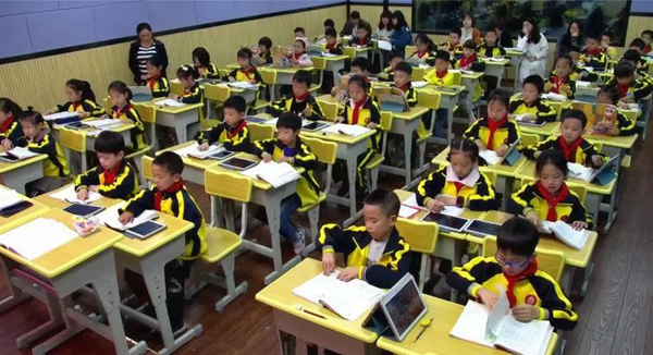 語文課上,在初讀課文后,為了強化生字詞學習,李老師將設計的教學活動任務推送至學生平板端,學生們隨即全員參與到生字詞認讀游戲中,動口朗讀識記,學生們興趣盎然,積極發言。聶老師則巧妙地將學生規范書寫的訓練,用學生平板拍照上傳進行展示。學生們知道自己的書寫練習會呈現在班級的教學一體機上,動手書寫的時候格外認真投入。此外,在數學的學習中,袁老師根據互動答題中學生的學習反饋數據及時掌握學生學情,針對學生薄弱點及時精講點撥。