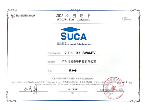 喜訊!希沃參與行業智慧教室標準擬訂,兩款交互式一體機獲SUCA聯盟“A++認證”