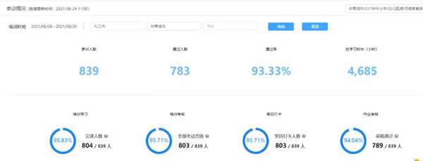 8月9日-8月20日為培訓的第二階段,此次線上培訓以“7天的線上研修課程+5天的提交作業階段”的形式進行。培訓過程中,老師們通過“希沃學院”平臺進入“2021年共青城中小學幼兒園教師信息素養提升培訓研修班”完成7天的研修班學習并在規定的5天內提交課件大作業即可完成整個培訓學習。